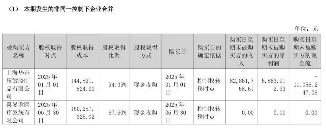进入2025年,公司的收并购动作还在持续,1月,花费1.5亿元收购上海华舟压敏胶制品有限公司94.35%股权,将华舟品牌收入麾下。6月,公司再次花费1.6亿元收购中国香港地区知名的医疗产品零售及批发商喜曼拿医疗系统有限公司87.6%的股权,将线下门店网络拓展至香港。